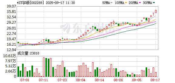 *ST宇顺再度涨停,8个交易日内录得6个涨停,累计涨幅为32.50%,累计换手率为8.88%。截至10:27,该股今日成交量196.78万股,成交金额7128.59万元,换手率0.70%。最新A股总市值达102.94亿元,A股流通市值102.83亿元。